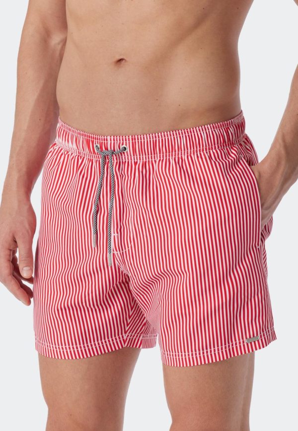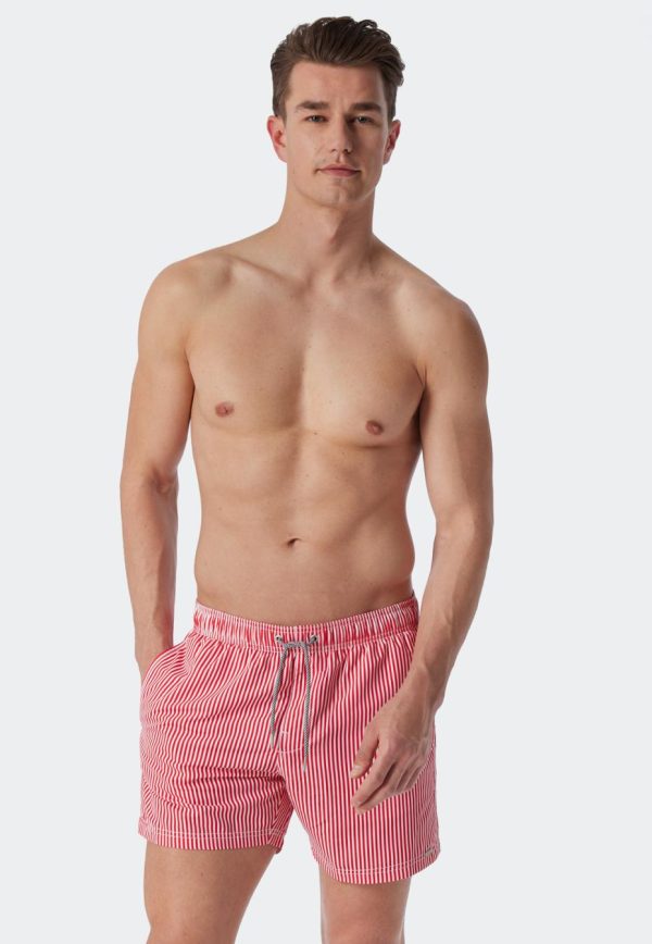 SCHIESSER Badeshorts | Swimshorts Webware Rot Gestreift Saltwater Rot Herren