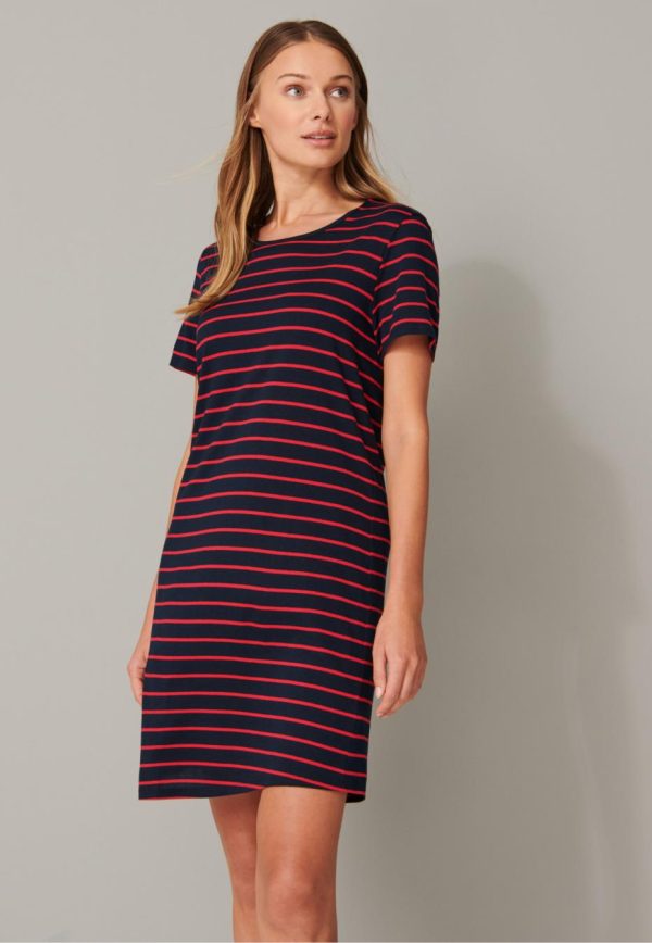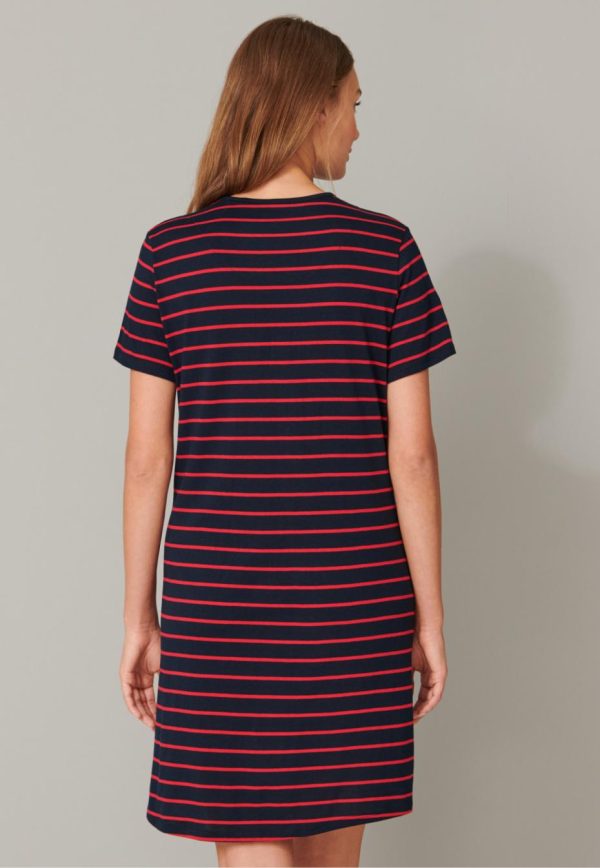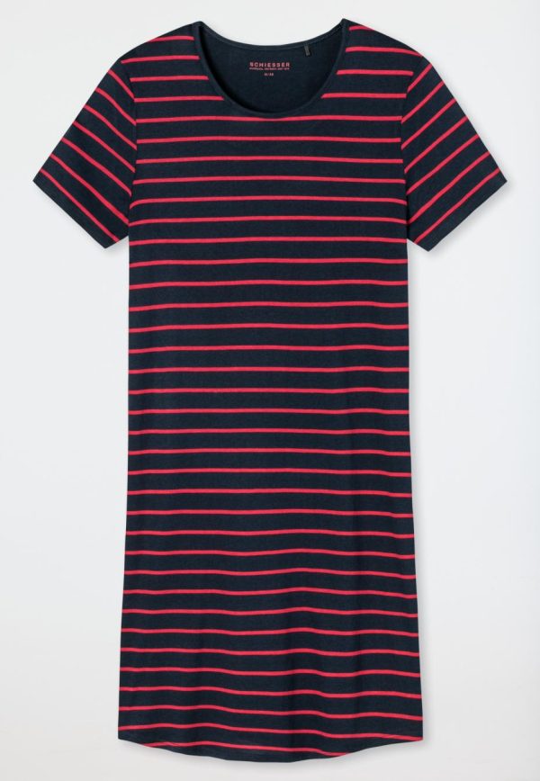SCHIESSER Nachthemden | Nachthemd Kurzarm Ringel Schwarz-Rot Nightwear Multicolor Damen
