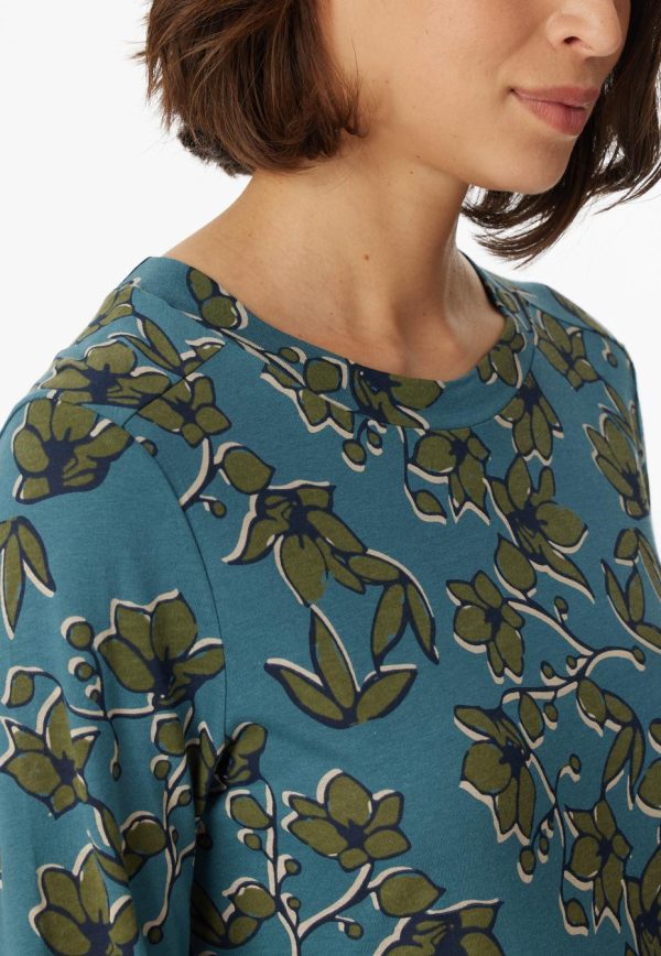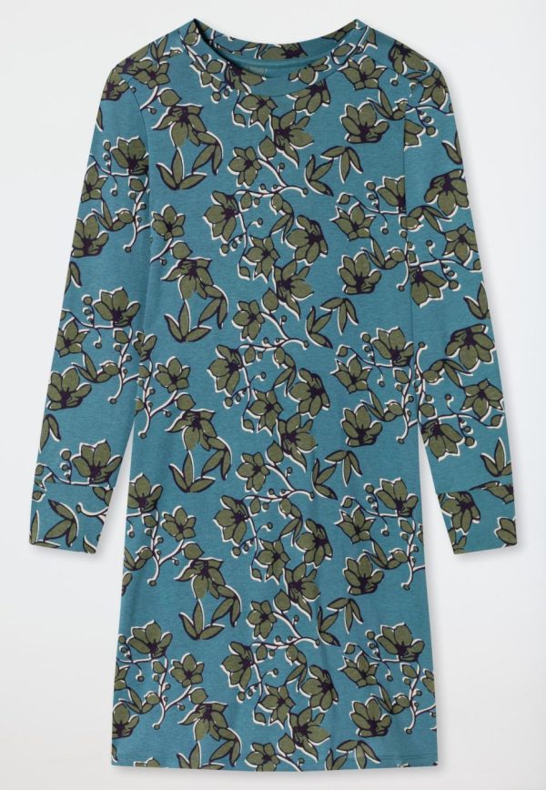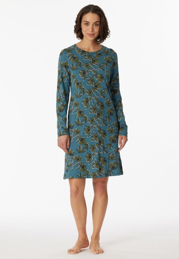 - petrolfarbenes Langarm-Sleepshirt für Damen mit Blumenprint