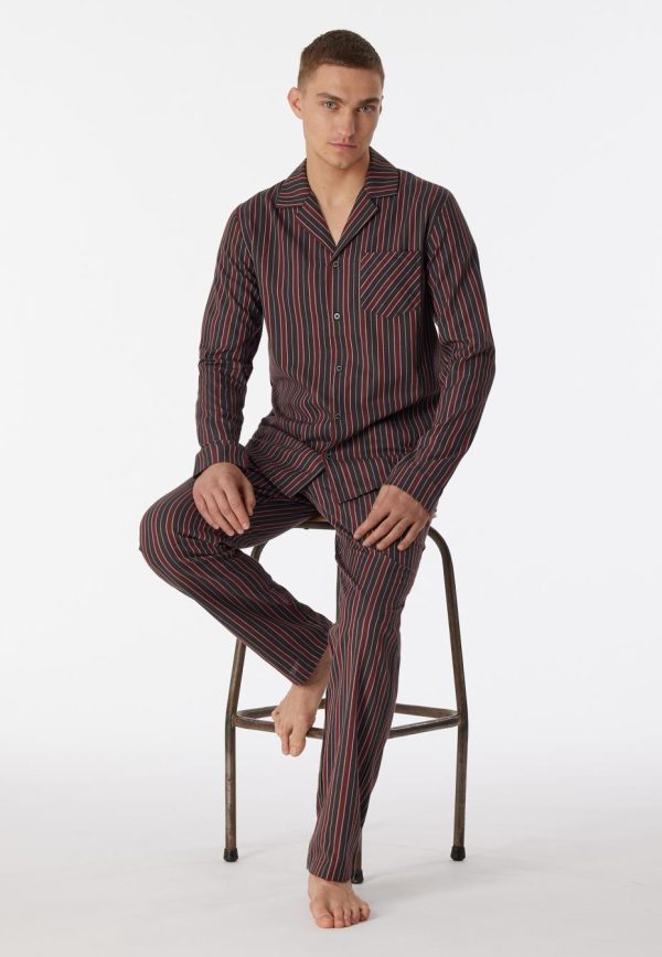 - langer, gestreifter Herren-Pyjama in Anthrazit und Terracotta
