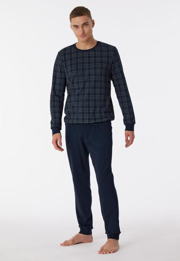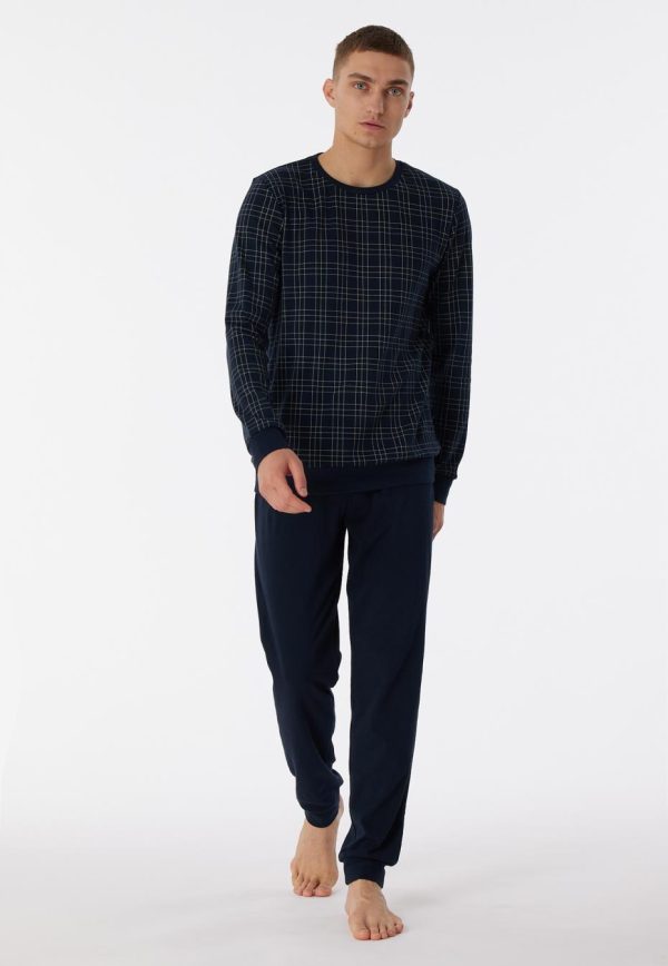 SCHIESSER Schlafanzüge | Schlafanzug Lang Interlock Bündchen Karos Nachtblau Fine Interlock Nachtblau Herren