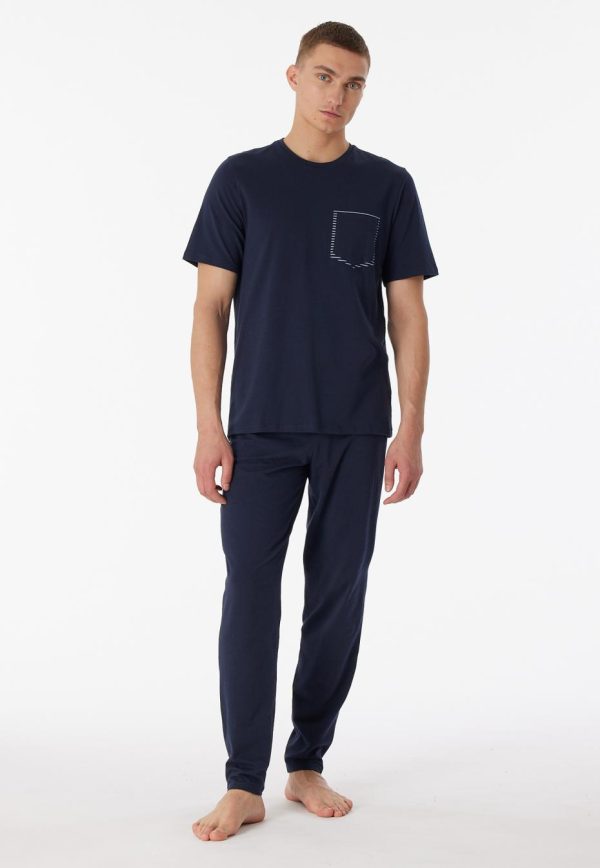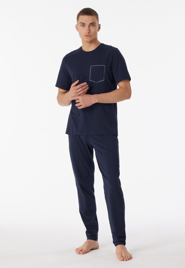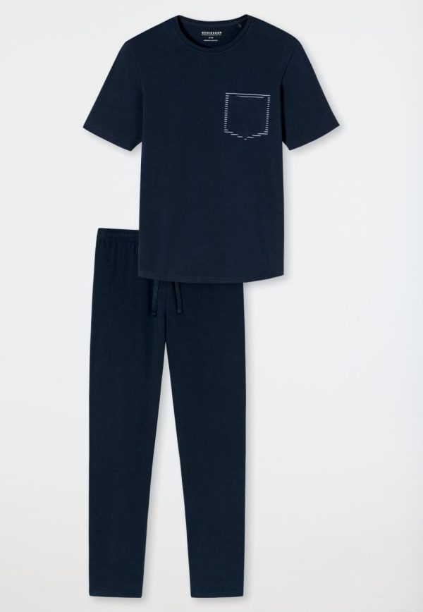 SCHIESSER Schlafanzüge | Schlafanzug Lang Kurzarm Organic Cotton Streifen Nachtblau/Nightwear Nachtblau Herren