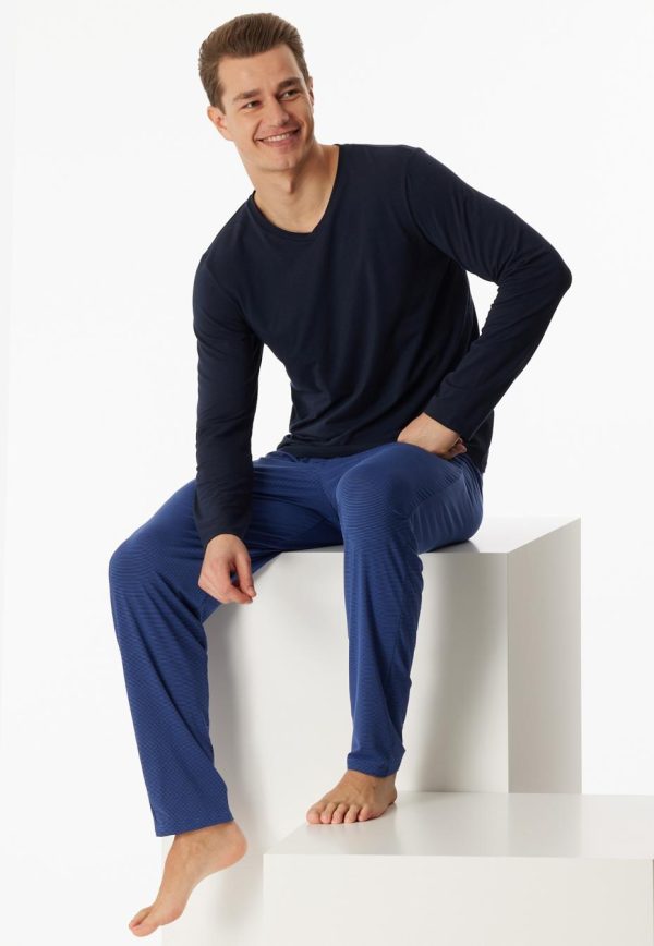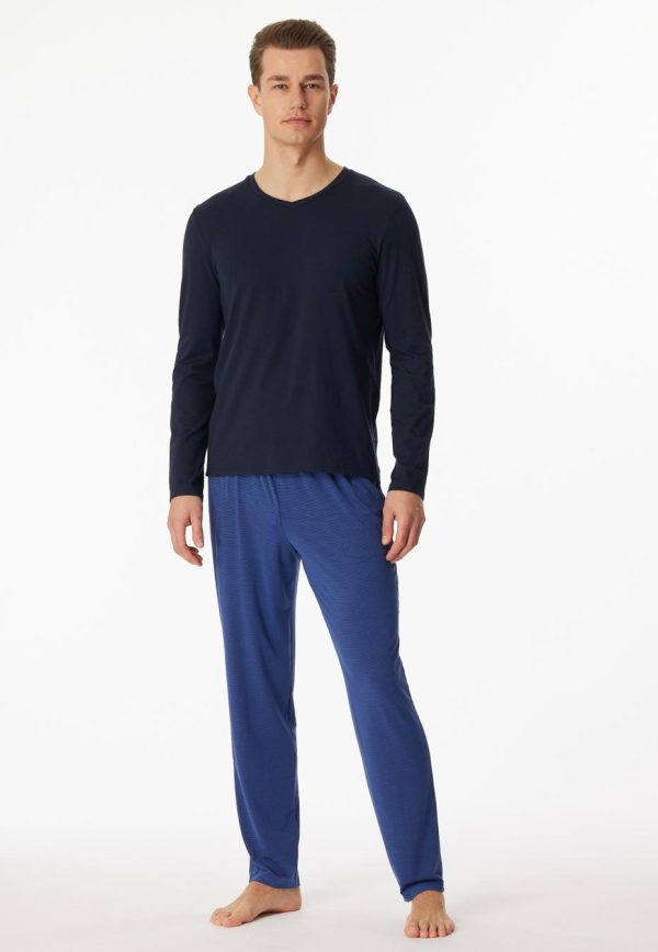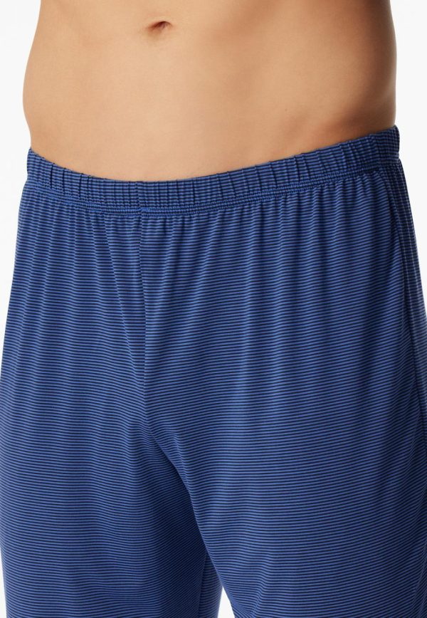 - langer, nachtblauer Herren-Schlafanzug mit royalblauen Ringeln