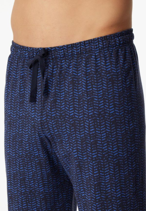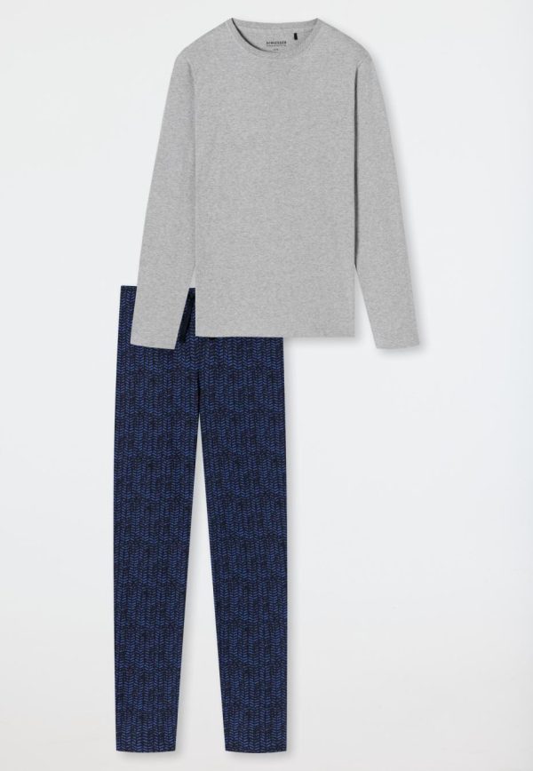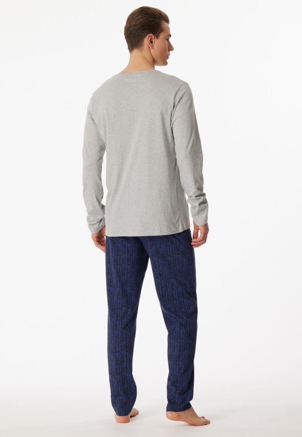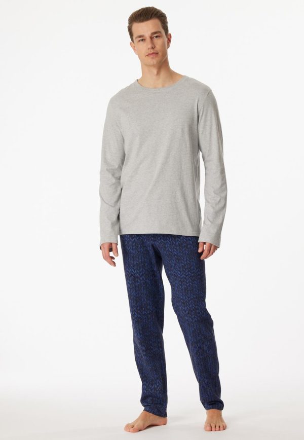 - langer, grau-melierter Herren-Schlafanzug mit gemusterter Hose in Nachtblau und Royalblau