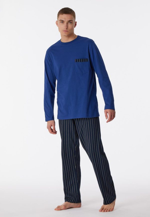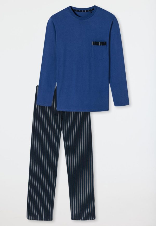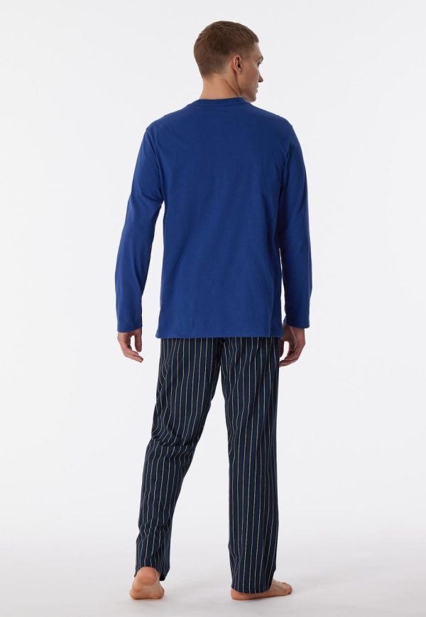 - langer, navyfarbener Herren-Schlafanzug mit gestreifter Hose in Navy, Royalblau und Off-white